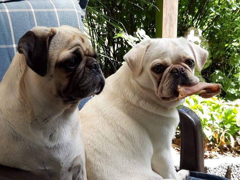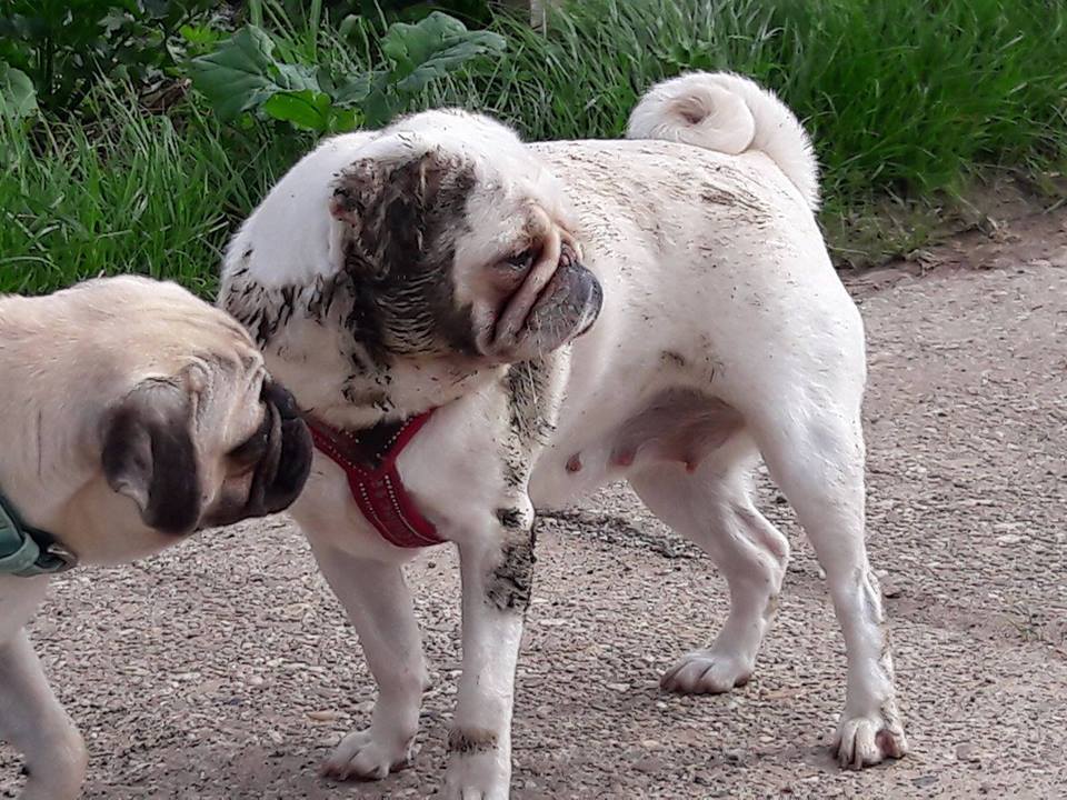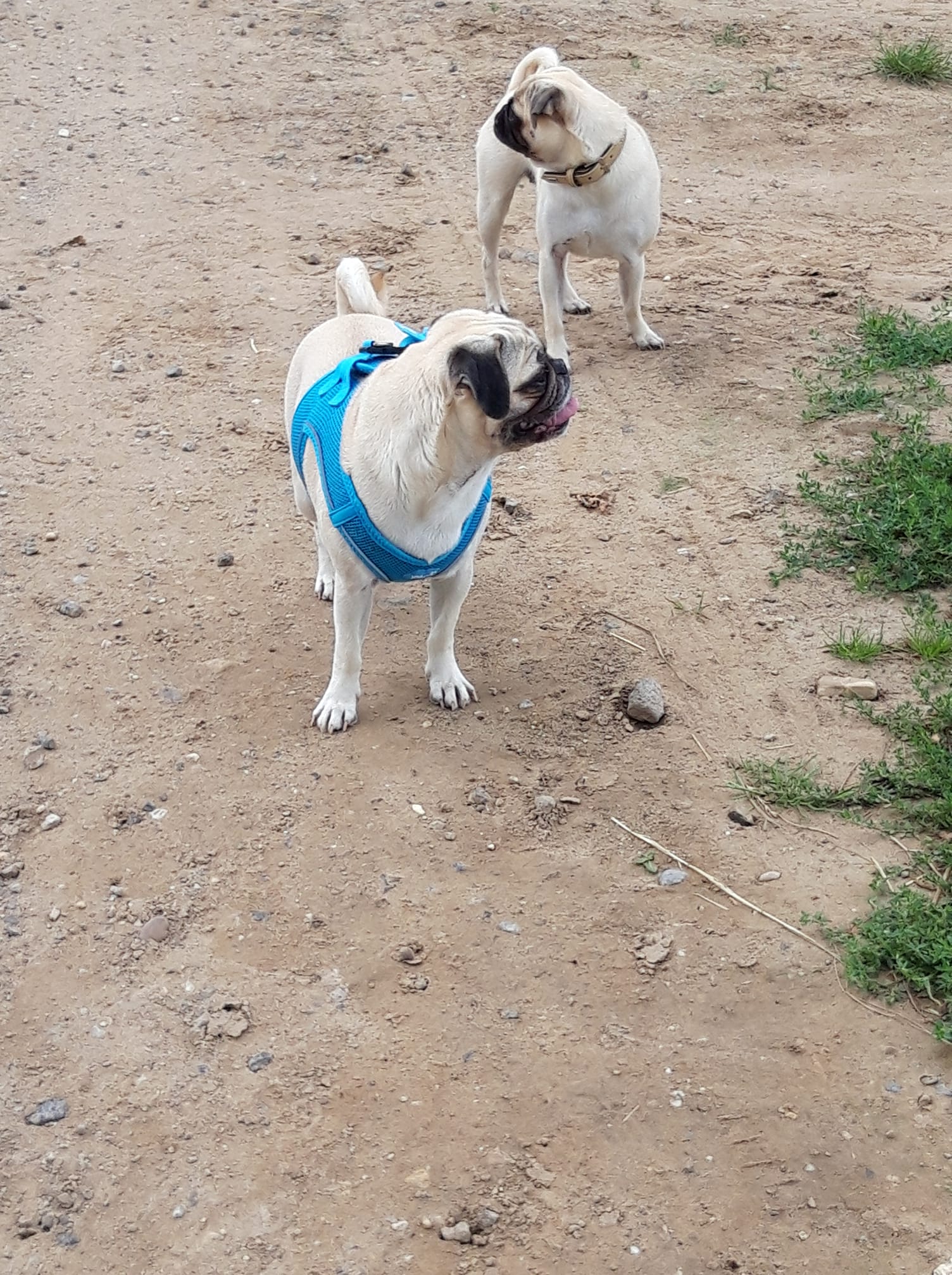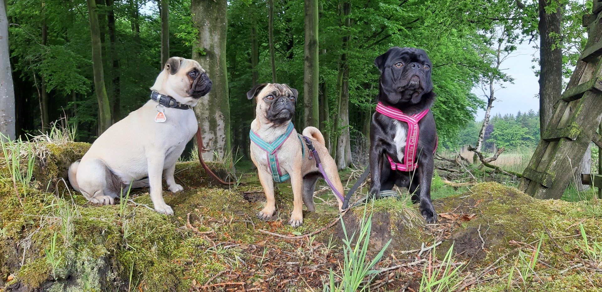 unsere Mops Gang oben und unten Antje & Tochter Frieda beim Spaziergang in den Höhen