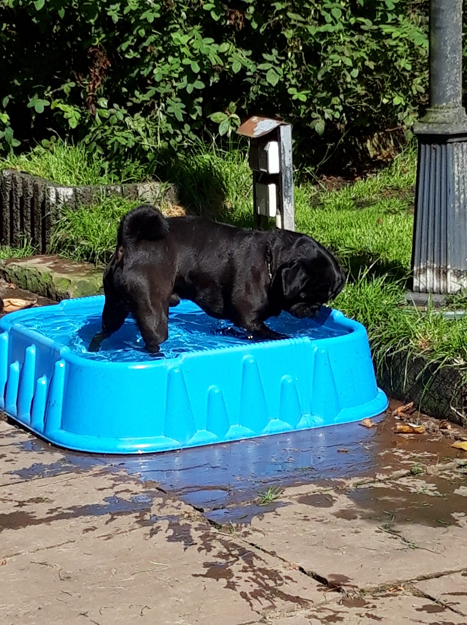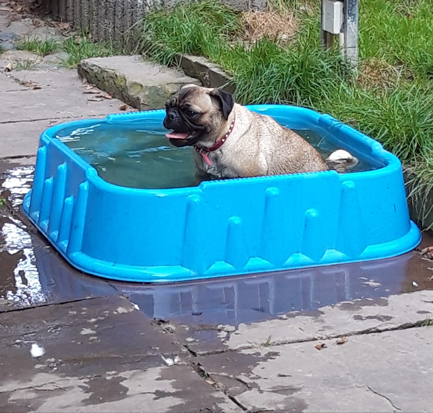 unsere Hunde gehen im Sommer gerne in den Hunde Pool um sich ab zu kühlen und wir Hunde Menschen machen das auch im gleichen Pool :-)